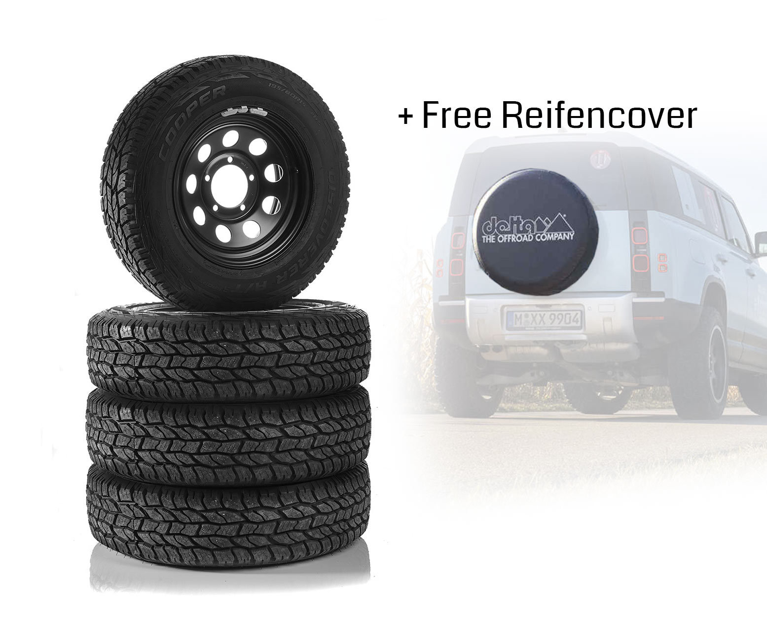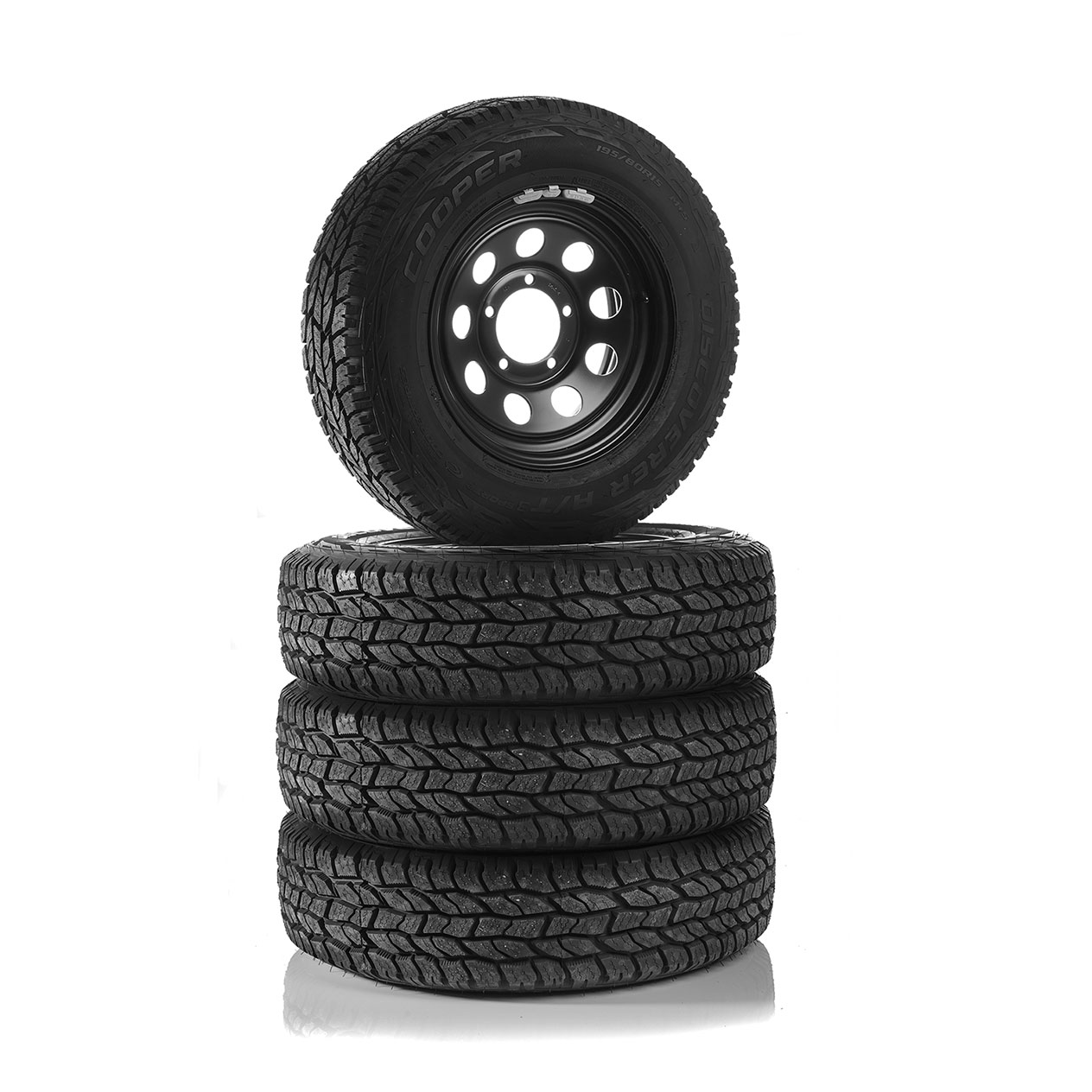 Komplettradsatz aus 4x Stahlrad BlakTrak (Trak II) mit Cooper Discoverer AT³ + FREE Reifencover! Reifen: Cooper Discoverer AT³ 195/80R15 Wintertauglich mit 3PMSF Load-/Speed-Index: 100T ...