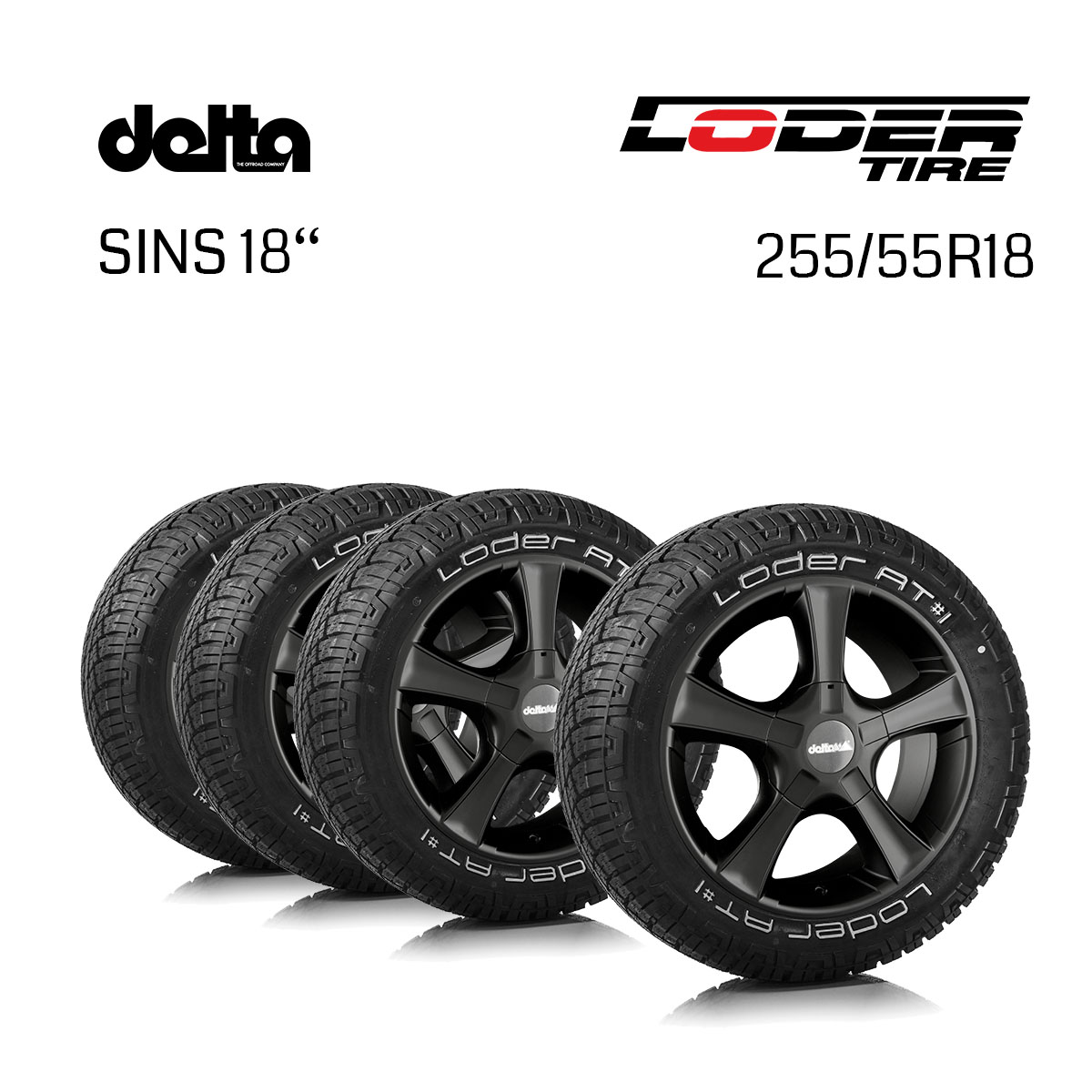 Produktinformation "Komplettradsatz Sins 18x8,5 | Loder AT1 255/55R18"