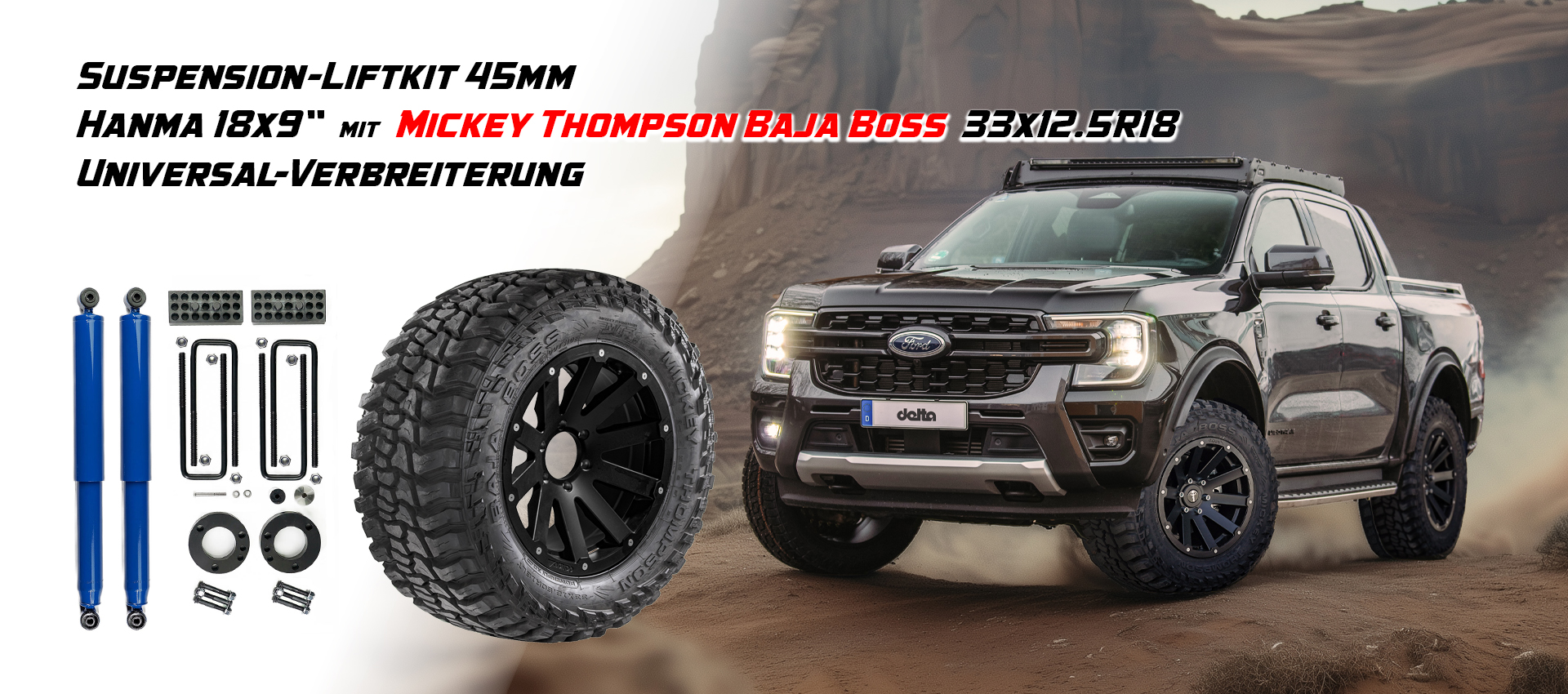 Produktinformation "Komplettumbau Ford Ranger mit Liftkit, Hanma und Mickey Thompson 33x12.5R18"
