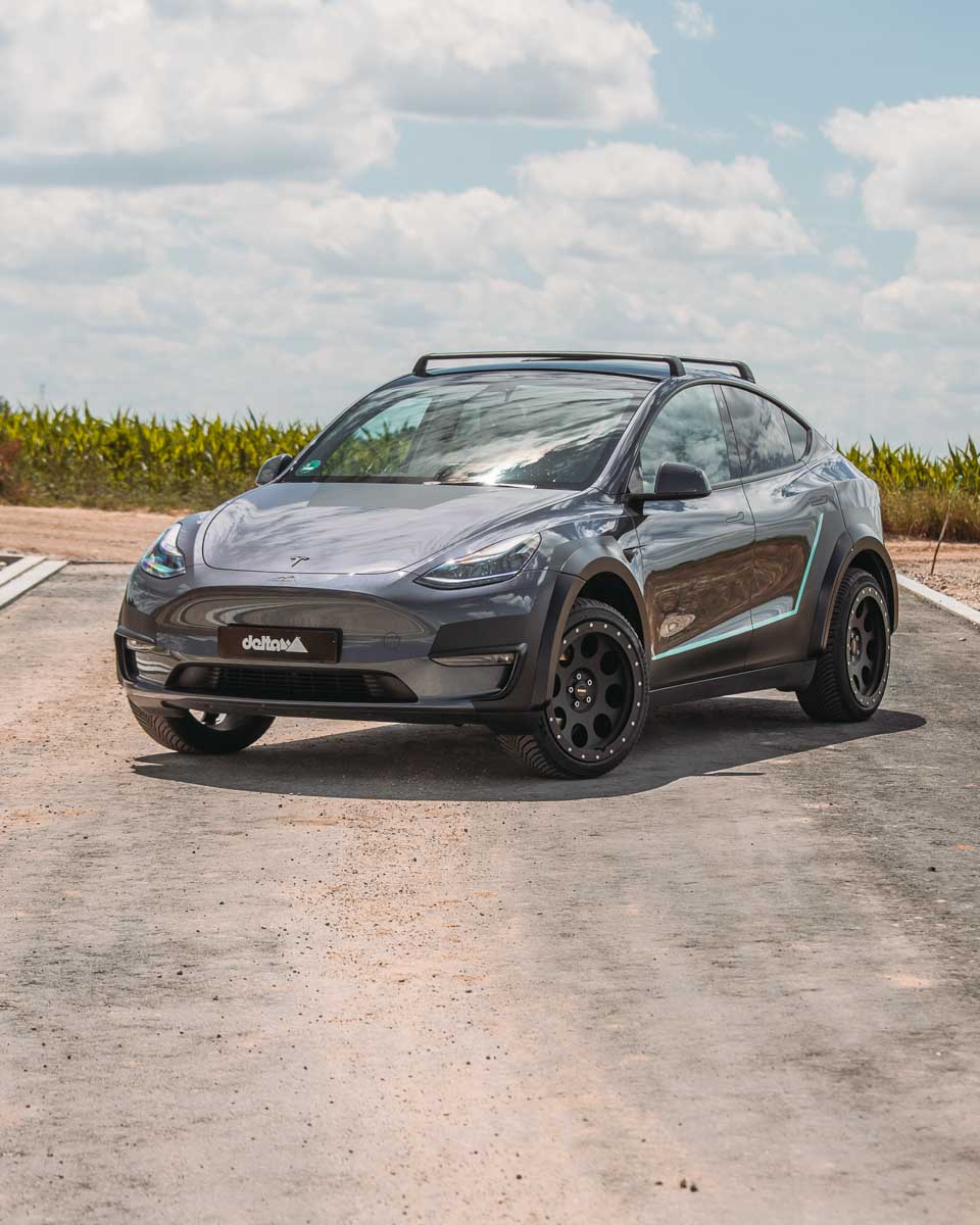 Der delta4x4 Klassiker für das Tesla Model Y! Markantes Offroad-Design in Schwarz Matt mit robustem Beadlock-Style.