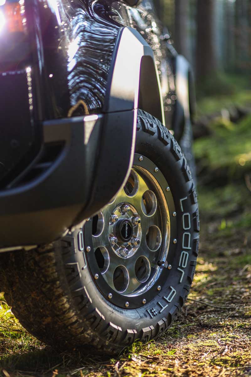Bei der KlassikB-Felge dient der modifizierte „Beadlock-Ring“ als Anfahrschutz. Dieser nimmt die Energie bei Geländekontakten auf, sodass die Felge selbst keinen Schaden nimmt. Ein beschädigter Ring kann unkompliziert und preiswert ausgetauscht werden.
